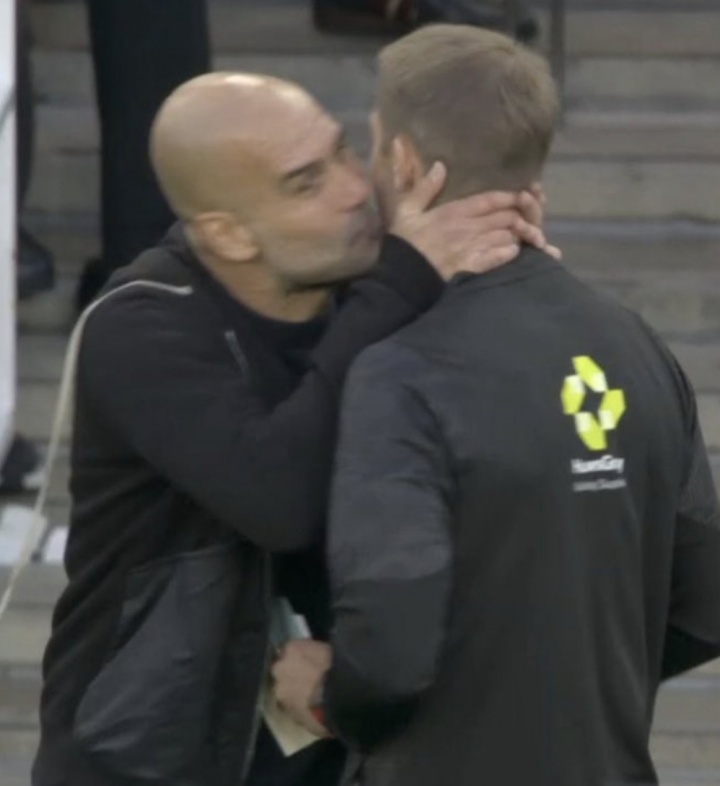 9月22日讯 阿森纳vs曼城第90分钟,瓜迪奥拉场边和裁判 沟通 ,还亲了一口裁判 的脸颊!