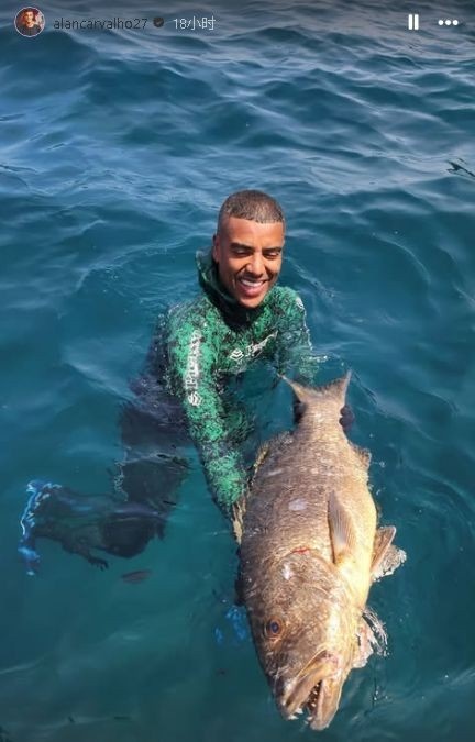 9月24日讯 36岁的前国足归化阿兰更新社媒,晒出自己捕获一只巨型石斑鱼的照片。