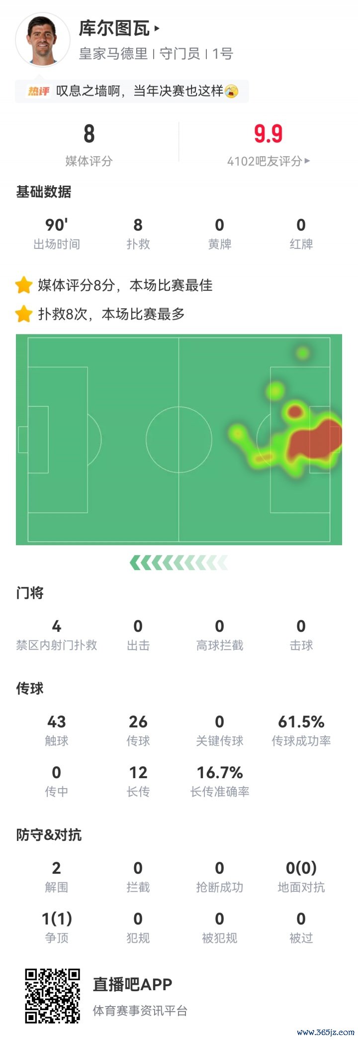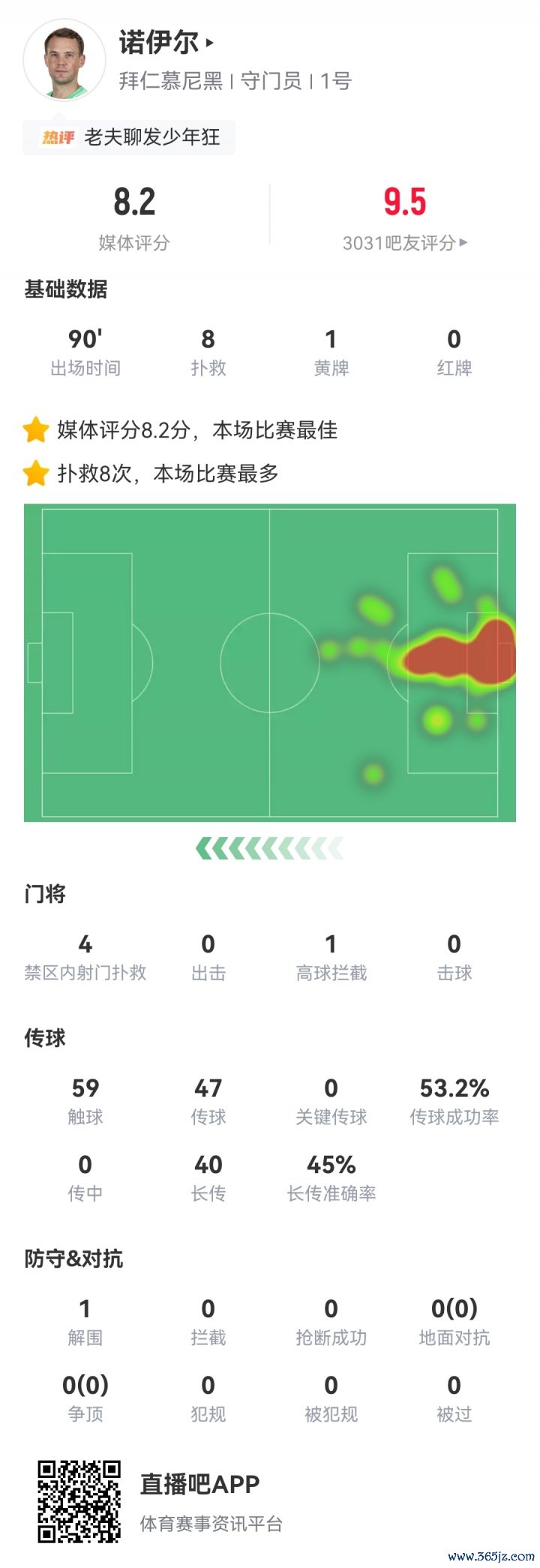 赛后评分机构Sofascore晒出了两位守门员的评分,苏超直播在线观看诺伊尔8.2分,库尔图瓦8.0分。