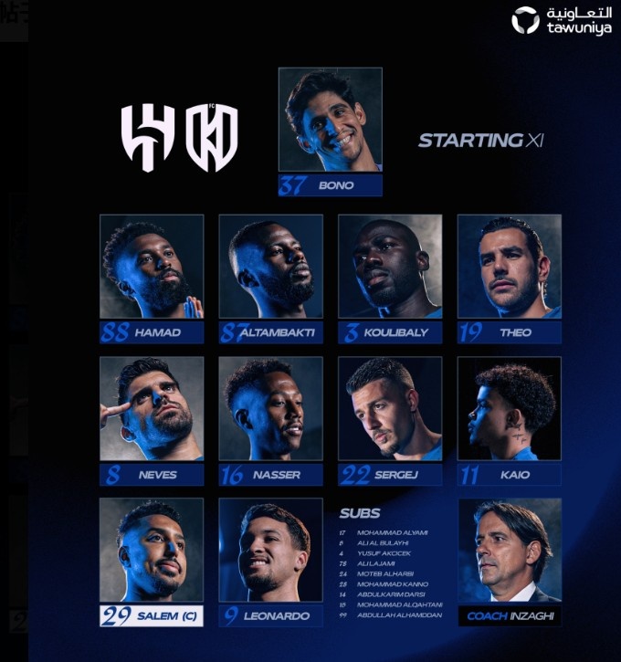 利雅得新月杆位:特奥、内维斯、米林出战,努涅斯、坎塞洛缺阵