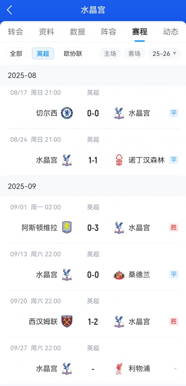谁能想到?水晶宫成为英超新赛季开赛至今唯一不败球队