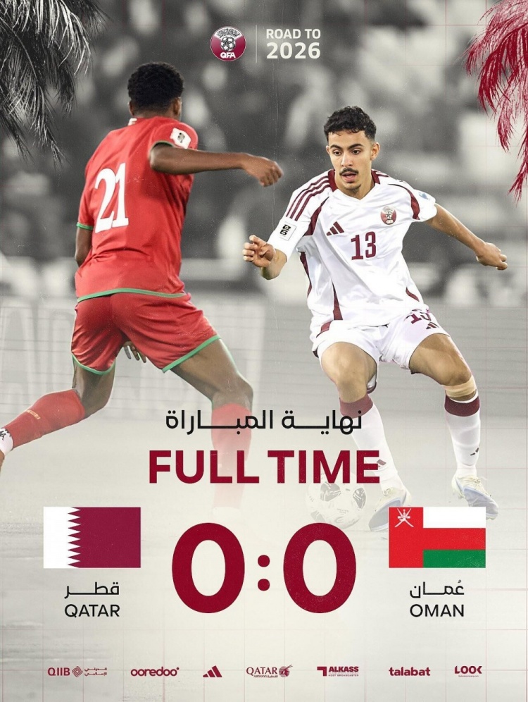 世预赛-阿曼0-0闷平卡塔尔 卡塔尔七成盘带时间 &12脚射球 仅2射正