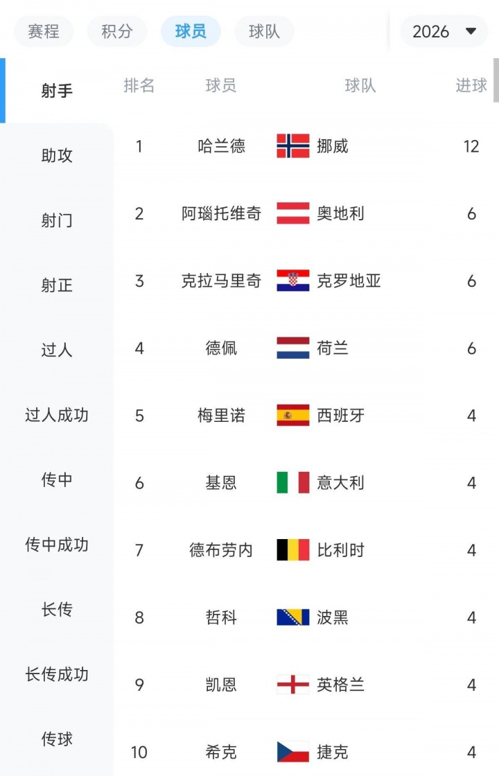 此役过后,哈兰德在本届世预赛射手榜上,苏超直播在线观看6场赛事 狂轰12球,他的得分 数是第2名(阿瑙托维奇等人)的两倍。尽管说各小组场次不一样,但哈兰德场均2球,依旧是鹤立鸡群般的存在。