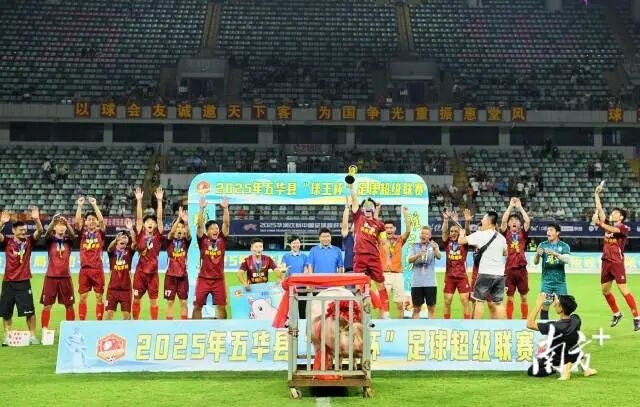 10月15日讯 10月12日晚,被称为“县超”的2025年五华县“球王杯”古代足球 超级职业联赛 落幕,横陂队夺得第一名 ,奖品是一头重达400斤的大肥猪。