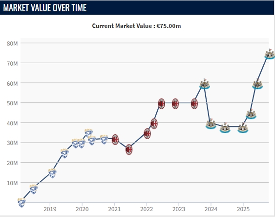 现效力纽卡的托纳利身价上涨1500万至7500万欧,成为意大利身价第二高的球员,苏超直播仅次于8000万欧的巴斯托尼。