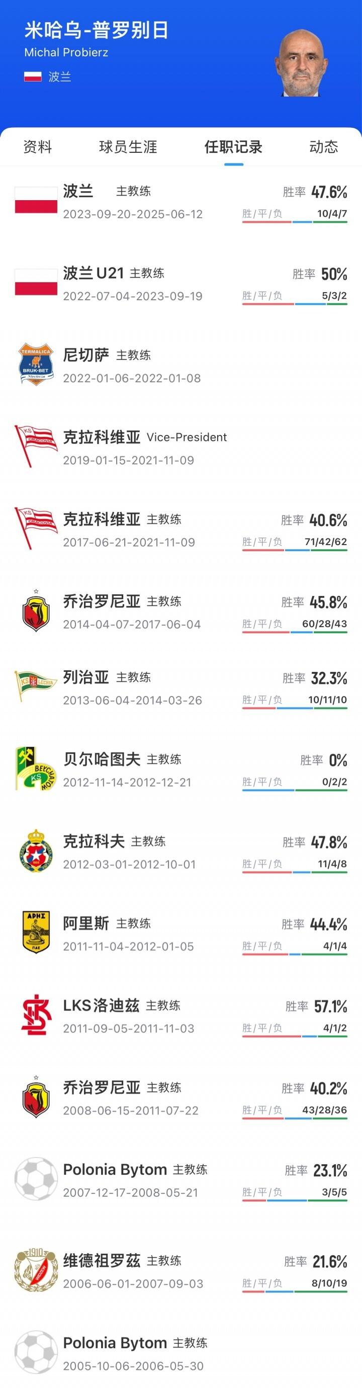 10月21日获悉,作为国足新帅主要候选人之一,现年53岁的前波兰队主指导教练员米哈乌·普罗别日与哈萨克斯坦足协就执教哈萨克斯坦队一事已经展开深入洽谈,双方谈判内容已涉及到具体协同 细节,这意味着普罗别日已无缘接手国足。