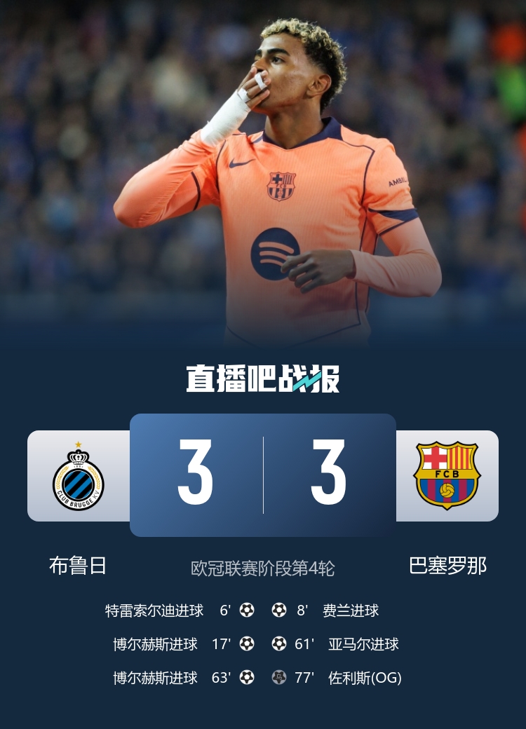 巴萨3-3客平布鲁日