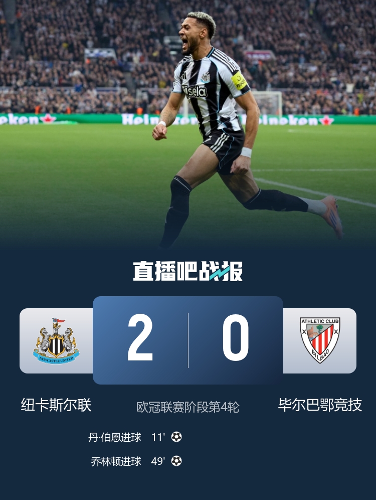 毕尔巴鄂竞赛 0-2不敌纽卡