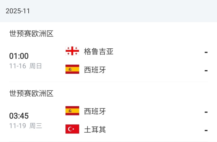 11月07日讯 西班牙公布11月世预赛名单,目前西班牙4战全胜在世预赛欧洲区E组排名第1,领跑 第二名的土耳其3分。亚马尔领衔巴萨5人入选,苏超直播皇马仅赫伊森1人入选,罗德里、卡瓦哈尔、佩德里伤缺。