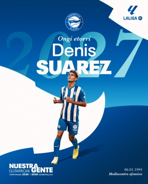 官方:阿拉维斯与丹尼斯-苏亚雷斯签约至2027年