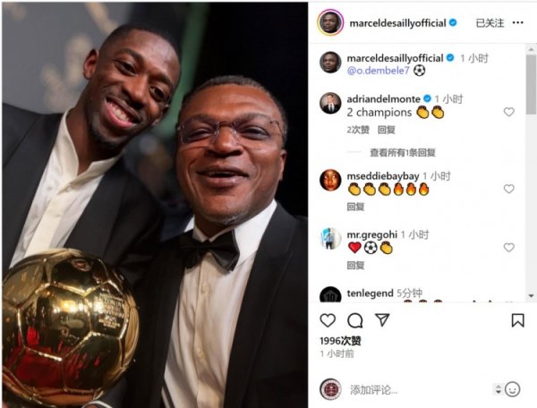姆总祝贺登贝莱!姆巴佩:太令人激动了兄弟!你值得千百倍!❤️