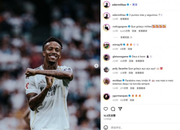 英超在线 9月21日讯 皇马在本轮西甲焦点战2-0力克西班牙人,米利唐杆位轰出出色 世界波。 第22分钟,米利唐危险区域 外围接应巴尔韦德的传送球 ,向前调整了两步后起脚抽射轰出世界波。 他也在赛后通过社媒晒出自己的庆祝动作,T正是其妻子缇娜的首字母。米利唐还配文道:“拿下3分,继续前进。T🤍” 同胞罗德里戈也现身评论区:“多么甜蜜 🥰🥰🥰🥰”英超在线。......查看更多