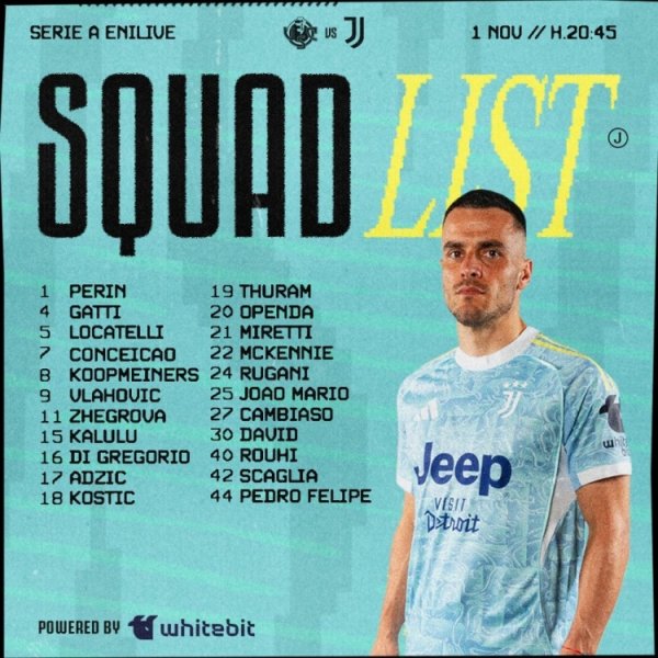 尤文职业联赛 大名单:DV9、卡卢卢、凯夫伦-图拉姆在列,伊尔迪兹缺阵
