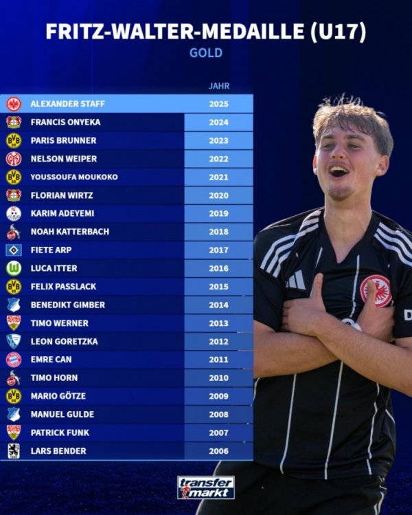 英超在线直播免费观看直播高清完整版 10月17日讯 法兰克福前场球员斯塔夫当选德国U17年度最佳新秀,德国转会市场列出了历届德国U17年度最佳新秀名单。 历届德国U17年度最佳新秀: 斯塔夫——2025 奥涅卡——2024 帕里斯-布鲁纳——2023 韦佩尔——2022 穆科科——2021 维尔茨——2020 阿德耶米——2019 卡特巴赫——2018 阿尔普——2017 卢卡-伊特——2016 ......查看更多